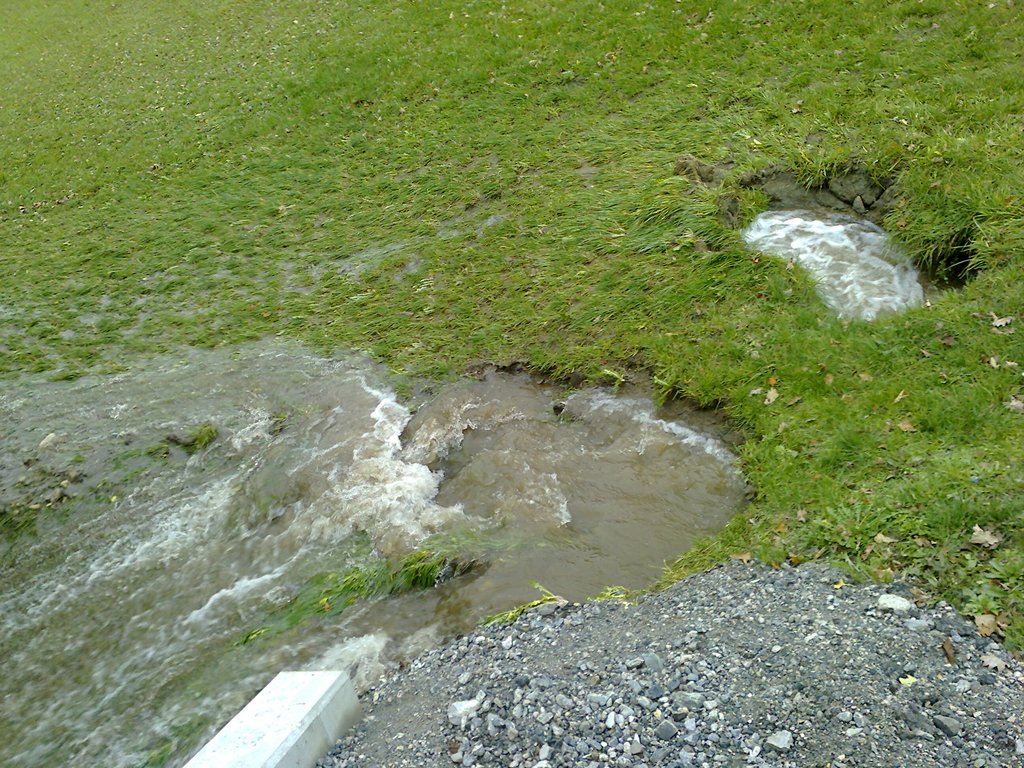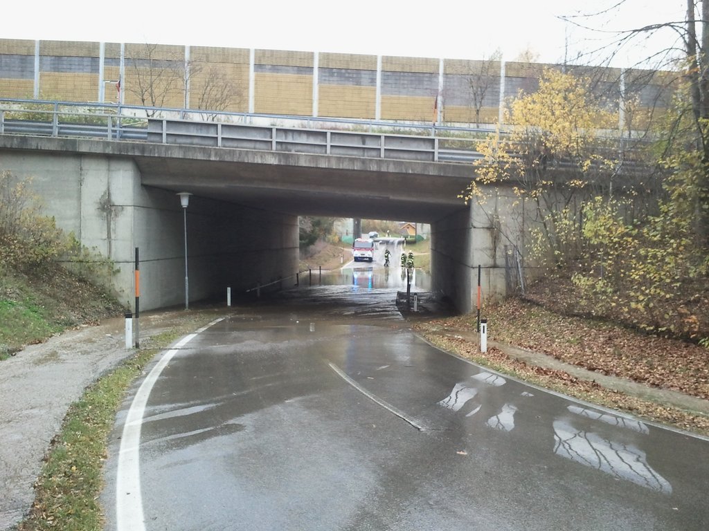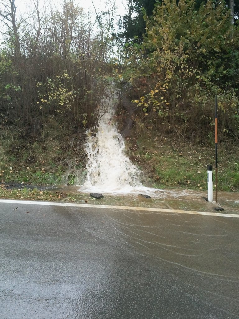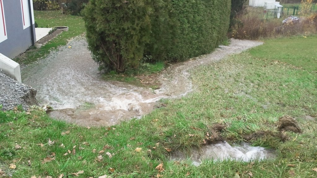 Die dadurch austretende große Wassermenge kam genau auf der Höhe des Hauses der Familie Berlinger im Prettenweg an die Oberfläche und grub sich den Weg durch den Garten in Richtung Landesstrasse. Dadurch musste die darunter liegende L9 für ca. 1 Stunde gesperrt werden um den relativ starken Verkehr nicht zu gefährden.