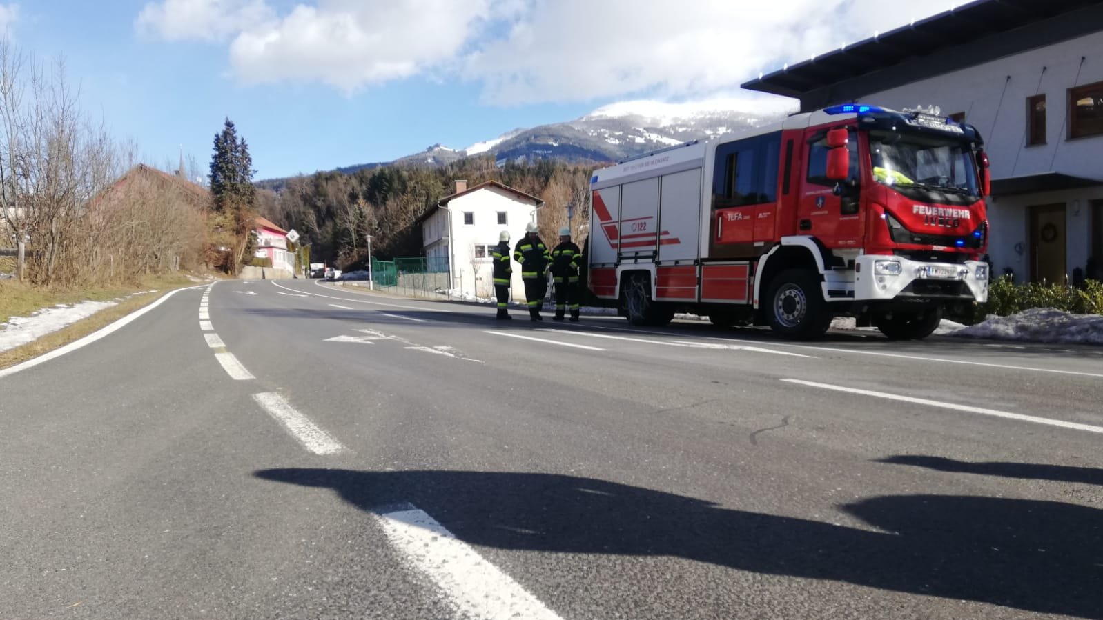 Aufgrund des noch anhaltenden Sturmes wurde vor Ort schnell entschieden, dass während den fast schon orkanartigen Böen keine Aufräumungsarbeiten unserer Seite durchgeführt werden können. Die Gefahr von weiteren herunterstürzenden Bäumen sowie Felsen auf die Straße und somit auf uns Einsatzkräfte war in diesem Moment zu hoch. Deshalb wurde beschlossen die Straße zu sperren.